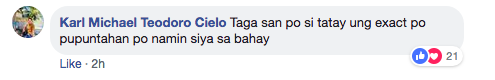 Facebook user Karl Cielo wrote on Geronimo’s post: “Where does father live, the exact [location] so we can go to his house [to help].”