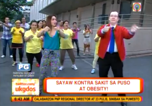 Remember when Health Assistant Secretary Eric Tayag used Psy’s “Gangnam Style” to convince Pinoys to skip the firecrackers in welcoming the New Year? Well, he’s doing it again. This time, he’s campaigning against heart disease and obesity. In this morning’s episode of “Umagang Kay Ganda” on ABS-CBN, ASec showed some fun dance steps to the tune of “Buttercup.”