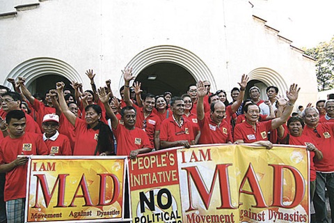 Sporting signs reading “I am MAD,” another activist group jumped into the burgeoning anti-dynasty political movement yesterday. Calling itself the Movement against Dynasties (with the catchy acronym MAD), the group began a signature drive at Baclaran Church from Sunday mass.