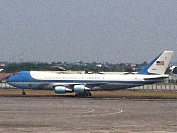 “Air Force One, the aircraft carrying the American leader, landed at the Ninoy Aquino International Airport in Pasay City,” reports Louis Bacani on Philstar.com.