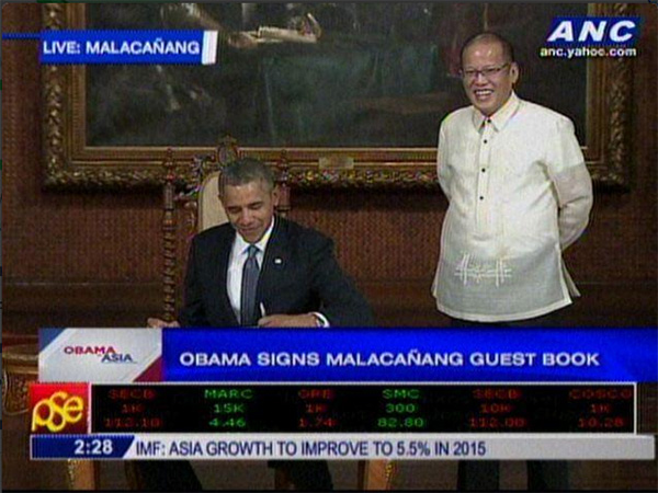 Obama flew into Manila from Malaysia, hours after the allies signed a new defence agreement allowing more US troops and defence hardware to rotate through the Philippines, part of a US rebalancing of military power towards rising Asia.