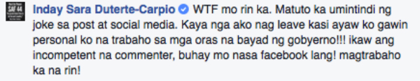 Journalists and keyboard warriors took note of Inday Sara’s post. The news appeared on major news sites.