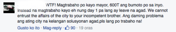 Mayor Duterte is currently on leave, with her brother vice mayor Paolo Duterte serving as acting mayor of Davao City.