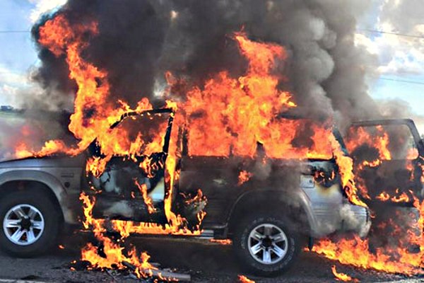 Traffic control officer Mike Ocampo said the three passengers all managed to get out of the vehicle. He said the vehicle was immediately taken off the road. Traffic is back to normal in the area