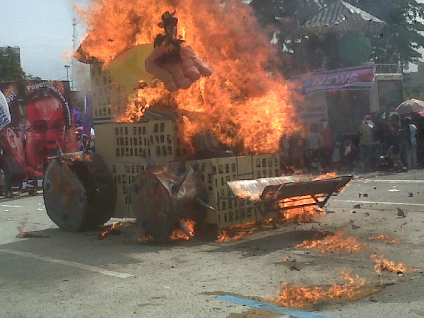 Earlier Monday, activists with Bagong Alyansang Makabayan clashed with police as they tried to get past a barricade meant to keep them away from Batasan Pambansa, where President Benigno Aquino III is scheduled to give his State of the Nation Address.