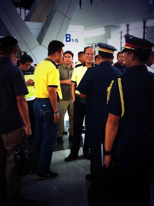 As the Holy Week exodus peaked, President Noynoy Aquino was seen at the Ninoy Aquino International Airport (NAIA) Terminal 3 on Wednesday, April 16. He and Department of Transportation and Communications Secretary Jun Abaya are shown talking to some civil aviation and security officials in this photo.