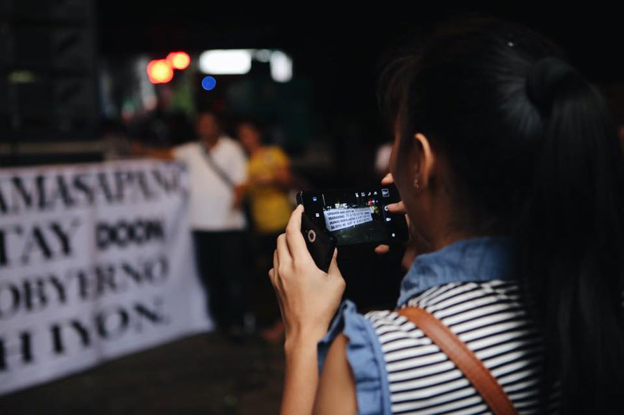 “There are performers here, too, who’ve started to cover songs by Kitchie Nadal and Up Dharma Down to keep the spirit of the rallyists up. They’re encouraging people to sing along with them,” she notes. Our correspondent predicts it’s going to get worse later in the day. We’ll keep you posted. In the mean time, scroll down to see more photos.