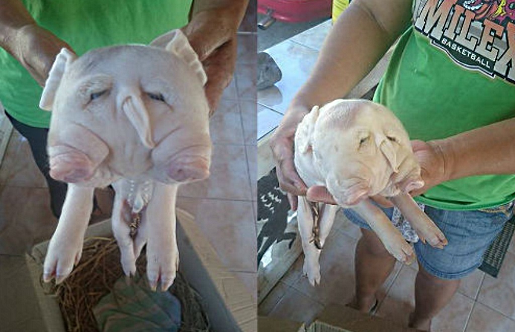 According to Crisanta Sabug, the two-headed piglet was the offspring her pet pig. It was the only one born with defects among the 10 piglets.