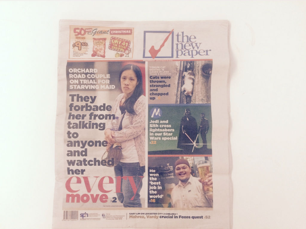 Lim Choon Hong and wife Chong Sui Foon, charged with starving OFW Thelma Gawidan, appearing on The New Paper