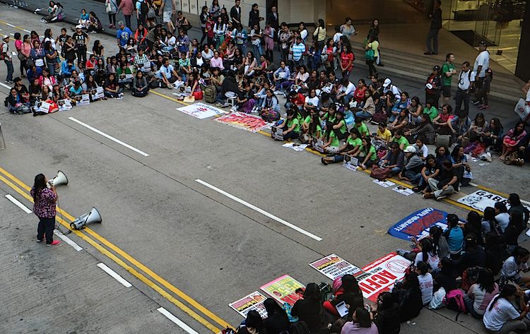 The Filipino domestic worker community in Hong Kong, with a little help from women’s group GabrielaHK, staged a rally at Chater Gardens on Sunday