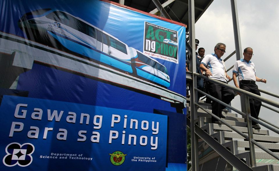 President Benigno Aquino III attended a test run of the first locally made Automated Gateway Transit (AGT) System at the University of the Philippines at Diliman.