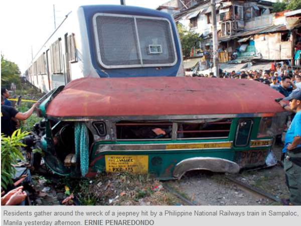 “At around 4:30pm on Monday, May 19, jeepney driver Ronald Valdez, 40, who was allegedly intoxicated, ignored the traffic signals and drove across the railroad tracks along G. Tuazon street in Sampaloc, Manila,” reports Aie Balagtas See in The Philippine Star.