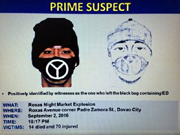 The Philippine National Police has released a cartographic sketch of one of the suspects in the Davao City blast which took the lives of 15 people and 14 and injured more than 60 others.