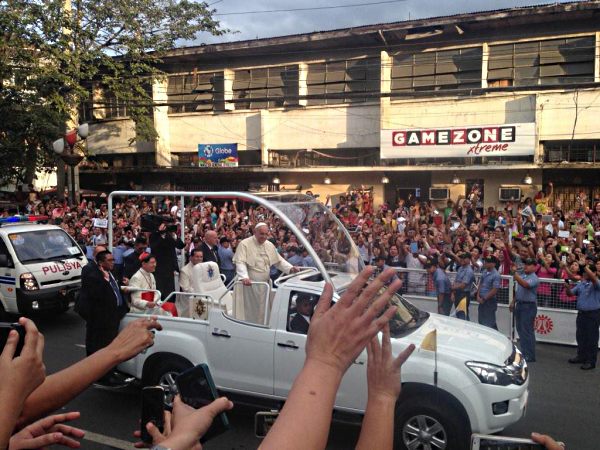 Pope Francis set aside Fri evening, Jan 16, the little black car provided him by his security detail for his Philippine visit and chose to ride in the open non-bulletproof “Popemobile” so the people could see him and he could greet them back.