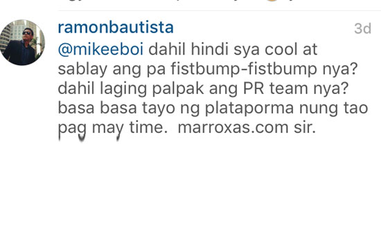 The video was released last Sunday and until today Bautista continues to receive hate messages and ugly comments on Instagram. Does he care?