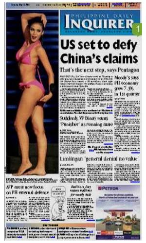 I was shocked and dismayed to see the Philippine Daily Inquirer (PDI) front page prominently displaying a photo of a woman in a bikini that is clearly meant to be provocative.