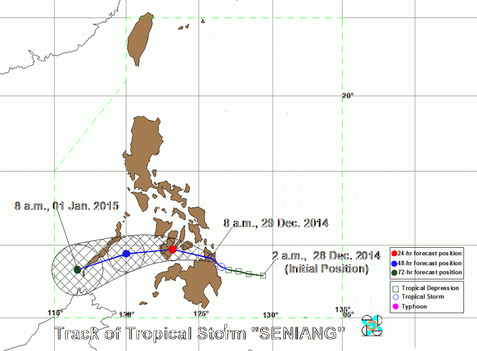 Tropical storm Seniang made landfall over Hinatuan, Surigao del Sur, on Mon, Dec 29.