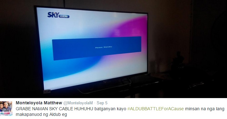 What?!!! SkyCable is sabotaging my #aldub again!!!! #ALDUBTheAbduction pic.twitter.com/5Q4BcTBQlN
