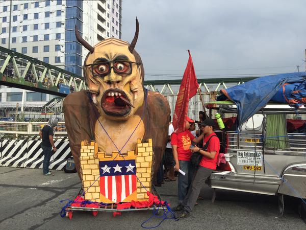 On Mon morning, Jul 27, dzMM correspondent Johnson Manabat took a photo of this effigy that was brought along by militant groups from the Southern Tagalog region. This fearsome creation will no doubt be burned as Presisdent Noynoy Aquino delivers his final SONA in Quezon City.