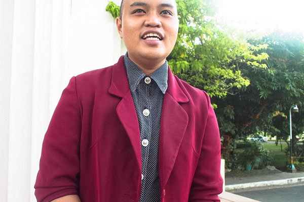 Eds Gabral, 24, is the national chairperson for Kasama sa UP (Katipunan ng mga Sangguniang Mag-aaral sa UP). He is enrolled in a Malikhaing Pagsulat (Creative Writing) degree program at the Diliman campus with a student number that starts with 2010. During the recent Oblation Run, Eds was at a protest against a proposal to change the academic calendar so that classes start in August and ends in May (instead of June to March). Unlike his makibaka peers dressed in rebel shirts and comfortable sneakers, Eds looked straight out of a Pinterest board labeled “vintage.”“Ang tawag sa look na ‘to, ‘lola-inspired,'” he gamely tells Coconuts Manila. “Sabi nila wear red or black, so pinagsama ko na lang. Pareho ko silang nabili sa ukay.” We asked Eds if we can take a proper profile photo but the student leader shied away. “Hagardo ako today,” he explains to us. Then he was called on by his peers to attend to something else.