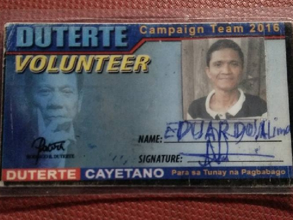 However, as of the filing of the report, there was no way of knowing if Alima was really a Duterte campaign volunteer.