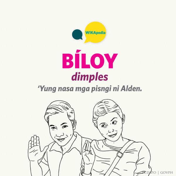 To illustrate the Filipino word for dimples, it featured a sketch drawing of Alden Richards and Maine Mendoza. “Yung nasa mga pisngi ni Alden,” it said. The word you’re looking for? Biloy.