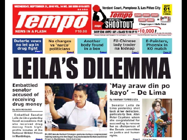 Ladies and gentlemen, we present the witty banner headline from Tempo: “Leila’s dilemma.” It’s a pun on the senator’s surname.