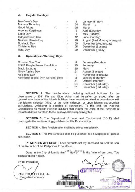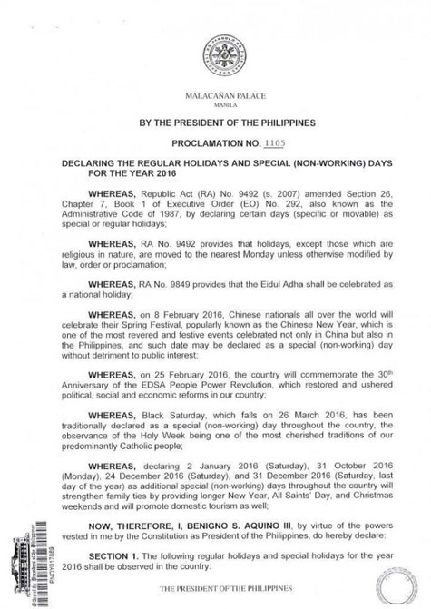 Malacañang just released the list of national holidays for 2016. From the list, there are 10 regular holidays, 9 special non-working holidays, and hmm, at least six long weekends.
