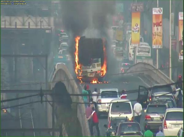“On Wednesday, the Metropolitan Manila Development Authority (MMDA) said a burning Manrose bus with plate number UVB-618 was spotted by its Metrobase through closed circuit television cameras at 4:45 p.m,” reports Mike Frialde on Philstar.com.