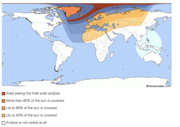 The report then said that “only residents of the Faroe Islands — a tiny, self-governing country off the northern coast of the UK — will experience an 100 percent occlusion of the Sun.”