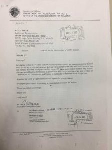 In a letter dated April 19, 2017, DOTr Undersecretary for Railways Cesar Chavez asked Busan Universal Rails Inc. to explain the glitches despite maintenance work on the trains done during the Holy Week break.