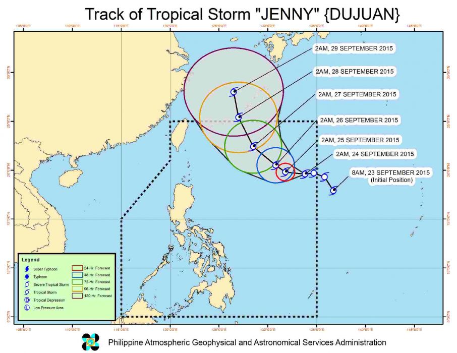 Tropical Storm Jenny (International name: Dujuan) is now within the Philippine area of responsibility (PAR). It entered PAR on Wed, Sep 23.