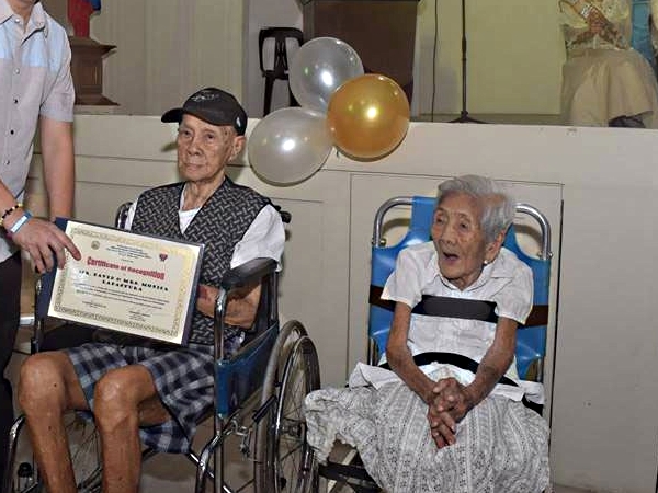 David, 102, and Monica Lapastora, 94, tied the knot at St. Clements Church in La Paz, Iloilo City on June 17, 1956. They have six children.