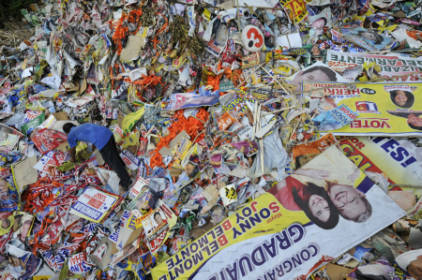After the polling day comes the dreaded clean up. With piles of campaign and election-related trash to clean up, the Quezon City government as well as EcoWaste Coalition has declared Tuesday, May 14 as post-elections clean up day.
