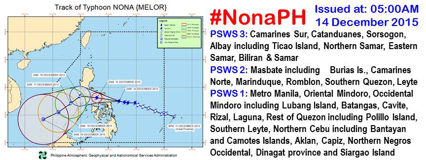 Typhoon Nona is expected to pass very close to Northern Samar by early Mon afternoon, then make landfall over Sorsogon in the evening.