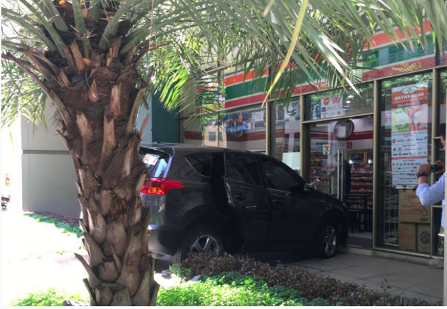 In a rather inconvenient “freak accident”, a sport utility vehicle (SUV) rammed into a convenience store at the ACCRA Law Tower in BGC on May 19, Thu morning.