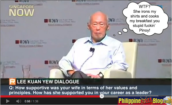Sometime in September 2011, a Filipino student in Singapore named Harvey Campos attended a dialogue with the father of modern Singapore Lee Kwan Yew and asked a very random question: “I’d like to say there’s an old adage that says behind every successful man is a woman, and yours passed away last year…and I’m interested to see and hear from you how supportive your wife was in terms of her values and principles.”