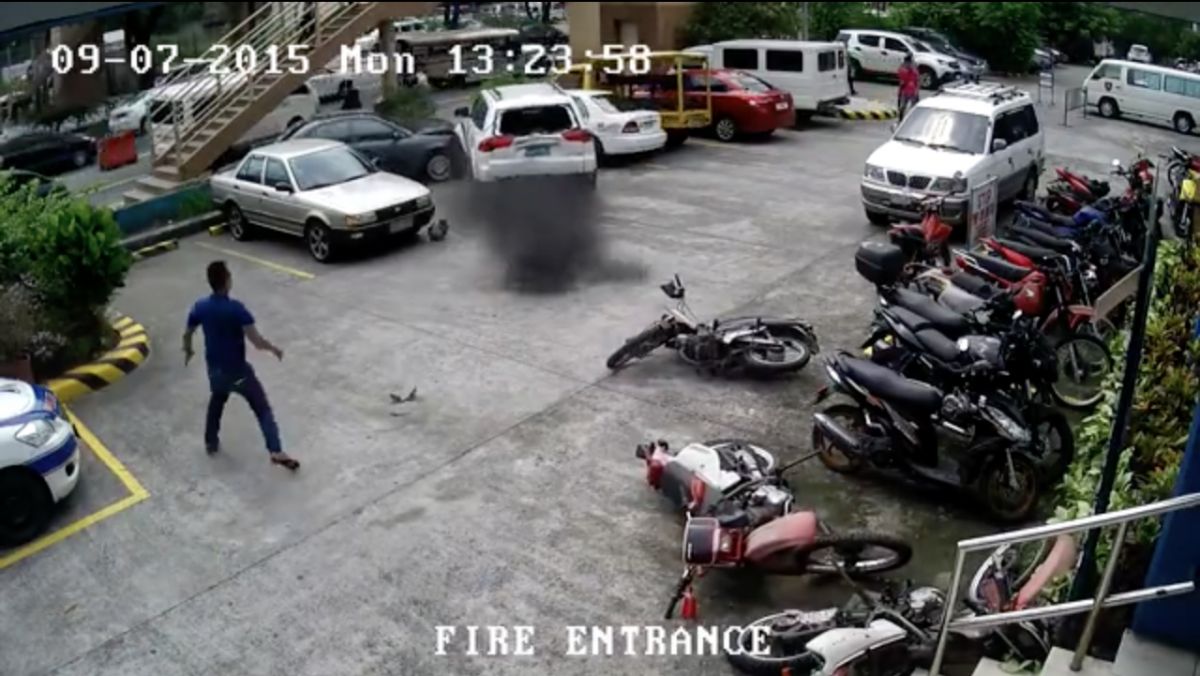 In a TV Patrol report Wednesday, the Montero was shown trying to park in front of a police station when it suddenly accelerated backwards, crashing into three parked motorbikes.