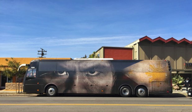 This bus is the biggest of Manny Pacquiao’s nearly 100-car convoy from California to Las Vegas. But Manny won’t be riding on this bus. Instead, he and his wife Jinkee will be on one of the many sports utility vehicles that are also part of the convoy.