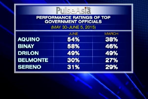 In the May 30 to June 5 survey, Binay and President Aquino were the only ones among the top five officials of government to obtain the trust and appreciation of the majority of Filipinos.