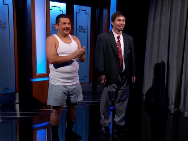 Pacquiao has been a guest on Kimmel’s show several times. His last appearance was in Apr 2014 ahead of his rematch with Timothy Bradley.