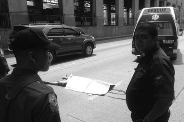 According to the Metro Manila Development Authority traffic constables in the area, the MRT station security guard had seen the man sitting on the edge of the walkway.