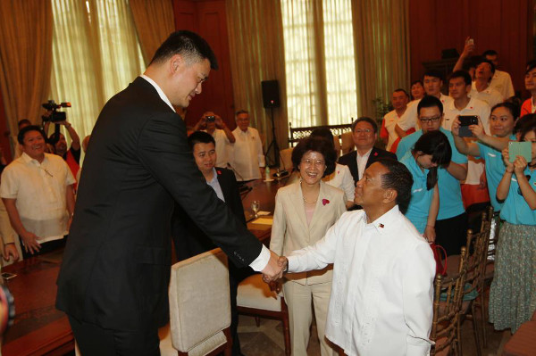Photo: Yao Ming with Vice President Jejomar Binay, neither of whom played in the friendly games. Office of the Vice President