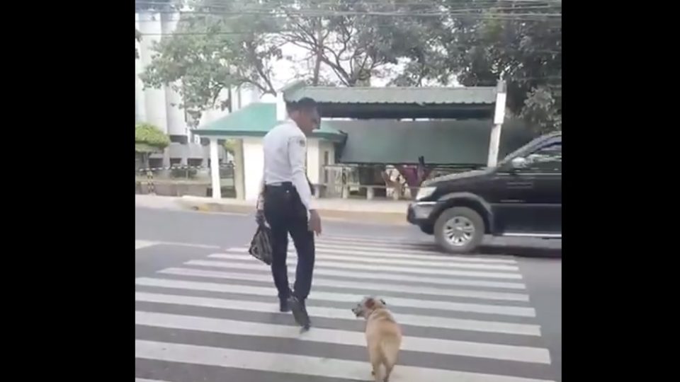 Just like this humble security guard who helped a stray dog cross a busy street in Cebu City.