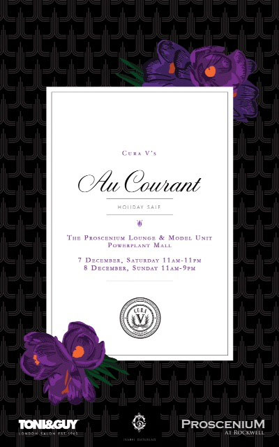 Dec 7-8. Cura V holds its second Au Courant trunk show at the Proscenium sowroom in Rockwell. As this is curated by Cura V, you can expect lots of unique and fabulous finds for every one in your list. 11am-11pm Satruday, 11am-9pm Sunday