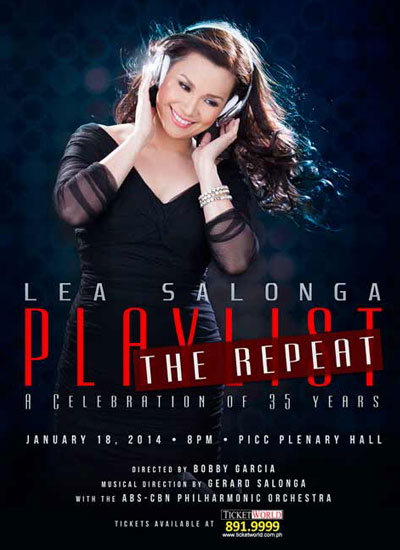 Jan 18. Beating yourself for missing out on Les Salonga’s much talked about “Playlist” concert? Lucky you—she’s holding a repeat on Saturday. After surprising audiences by singing “Blurred Lines” maybe the global singer will do a Miley tune this time? 8pm, PICC Plenary Hall with ABS CBN Phil Harmonic Orchestra Tel. No. +63 2 891-9999. From PHP1,042.