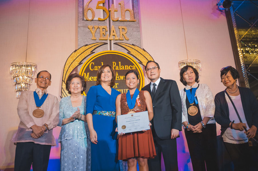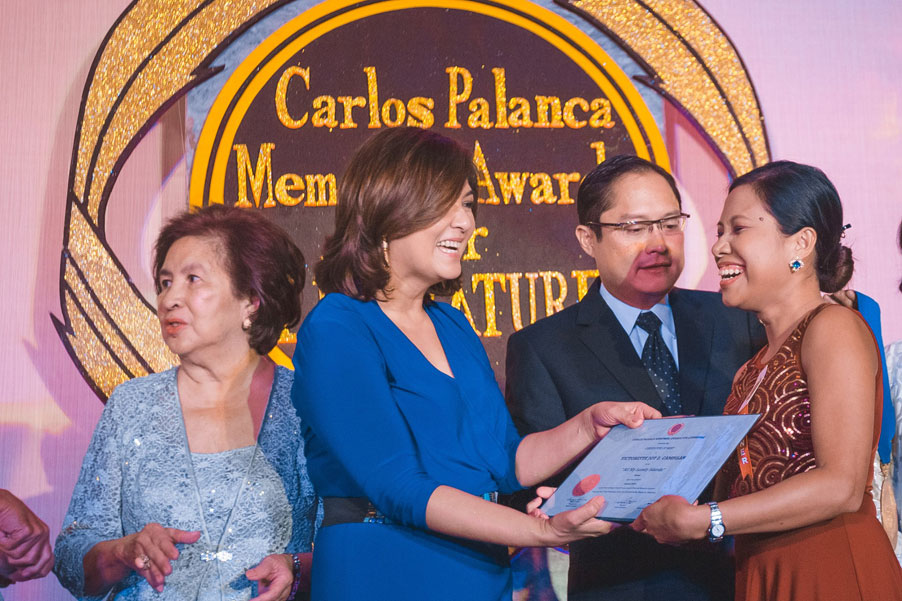 “Yung mga kakilala ko lang po sa Wattpad yung nag-introduce sa akin sa Palanca. Nag-try lang po ako,” she tells Coconuts Manila during the awarding ceremony at the Rigodon Ballroom of Manila Peninsula Tuesday night.