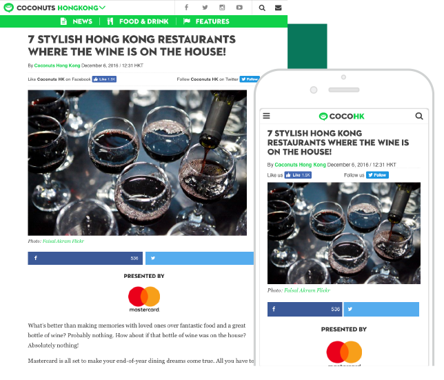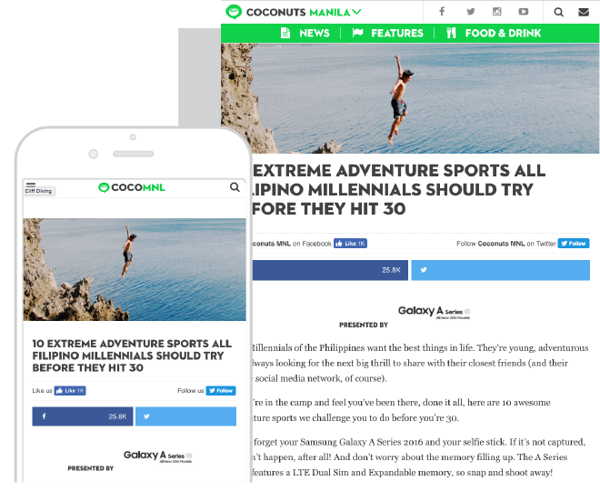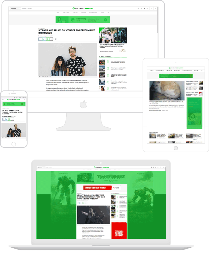 Videos can be targeted on Coconuts YouTube, Coconuts city sites and on Coconuts global and/or city Facebook pages.