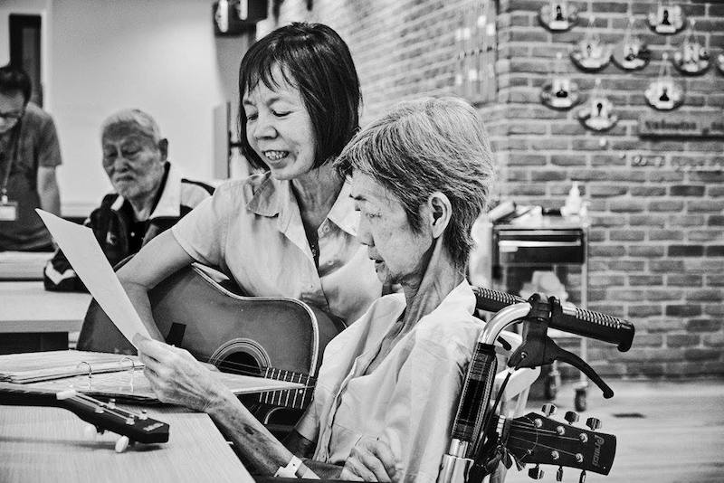 He took black and white pictures of other patients at the Assisi Hospice and put 19 of them on display in an exhibition. Titled Come Walk With Me, the photos depict his fellow patients interacting with caregivers and volunteers or engaged in activities like arts and crafts, mahjong or music. The final selected few were whittled down from 100 photos that Lee took over the course of a month.