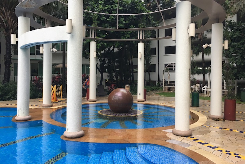 To get in, veer to the right of the security gates, walk down into the carpark, then take the lift up to the main swimming pool. The vast, turquoise pool is presumably where the condo gets its name, as to swim in it feels like you’re drifting in the shallows of a Caribbean beach.